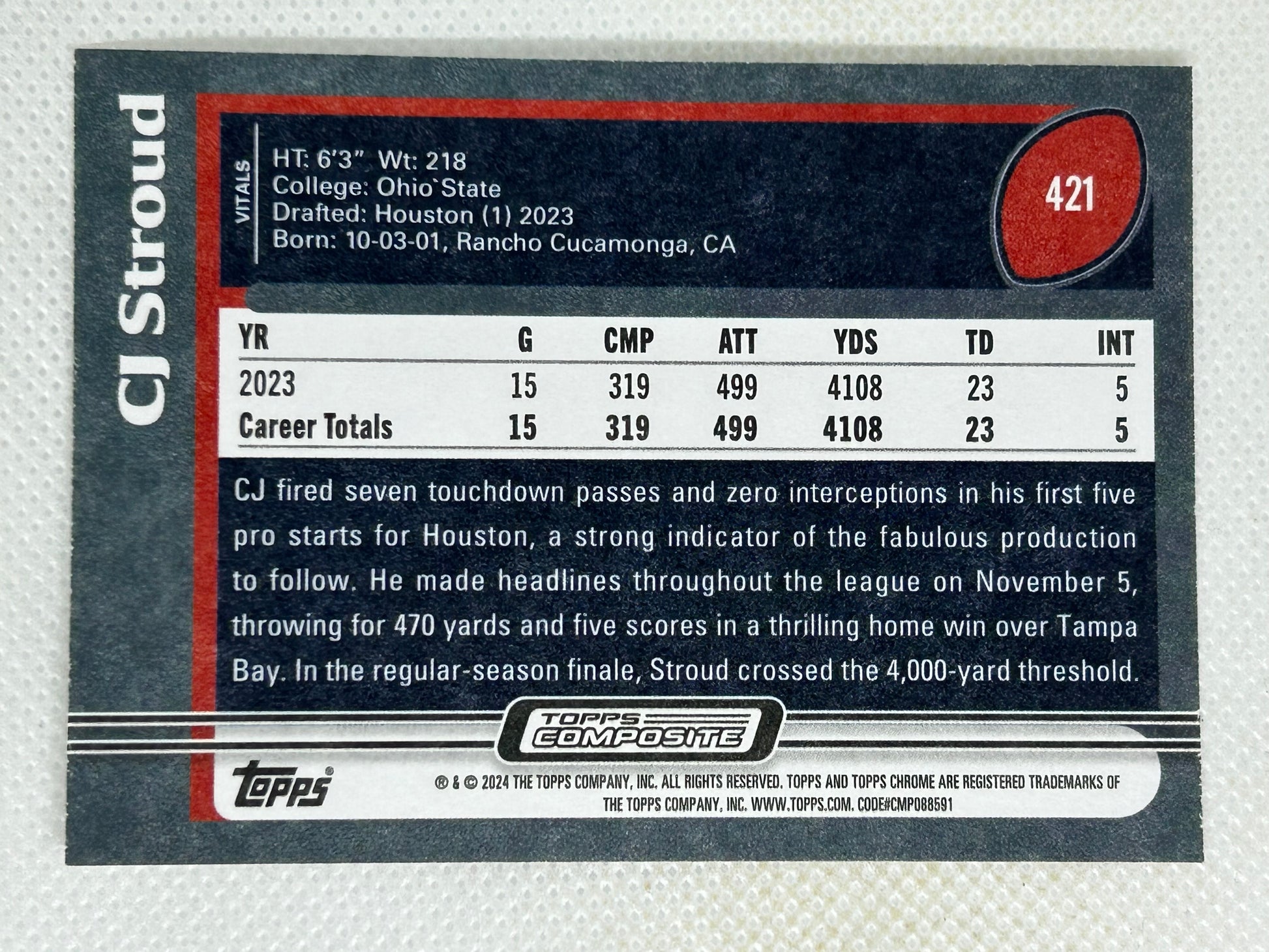 The 2024 Topps Composite Rookie Card #421 showcases the promising career of C.J Stroud with the Houston Texans.