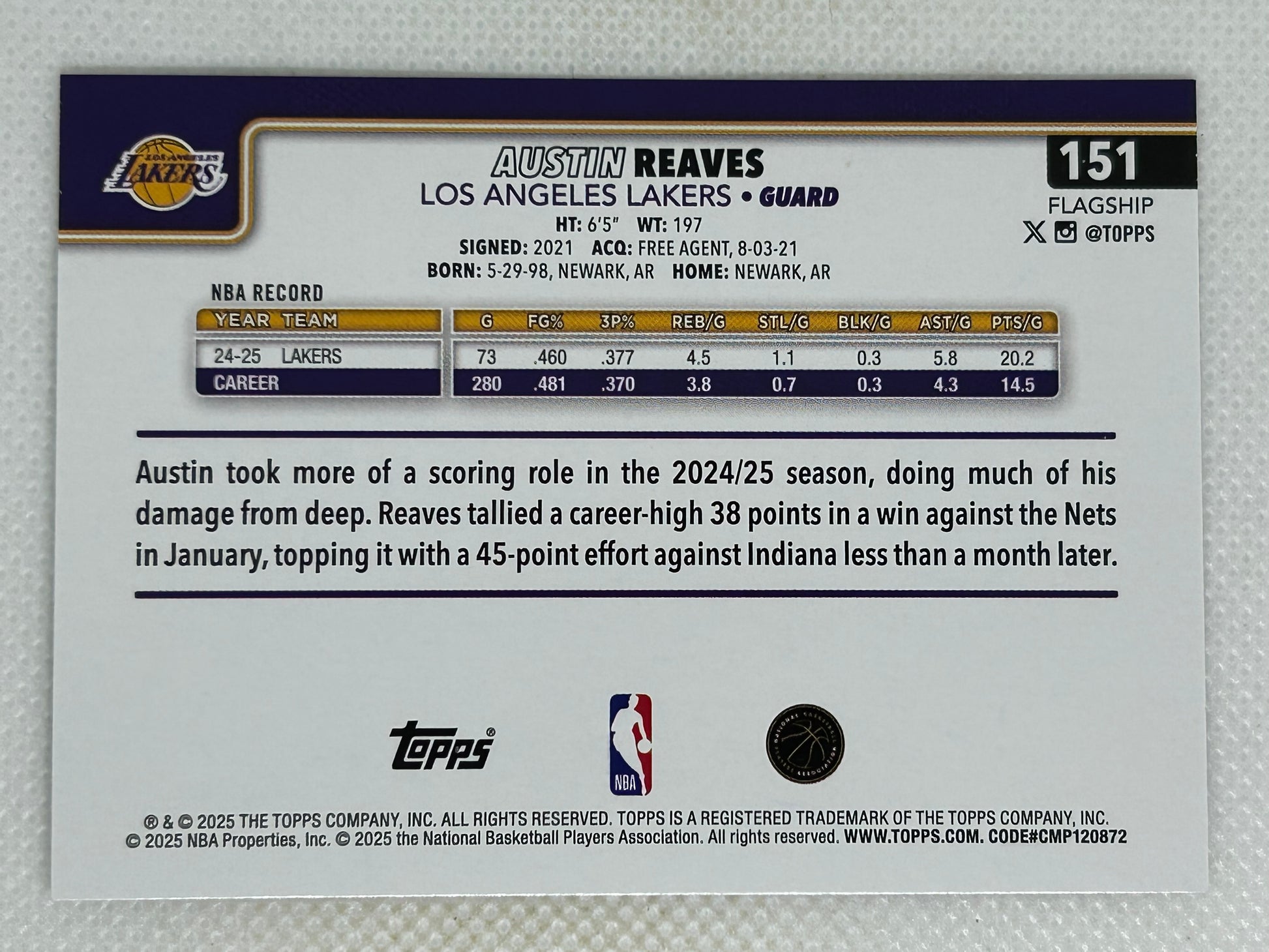 2025-26 Topps #151 Silver Diamanté Austin Reaves Los Angeles Lakers