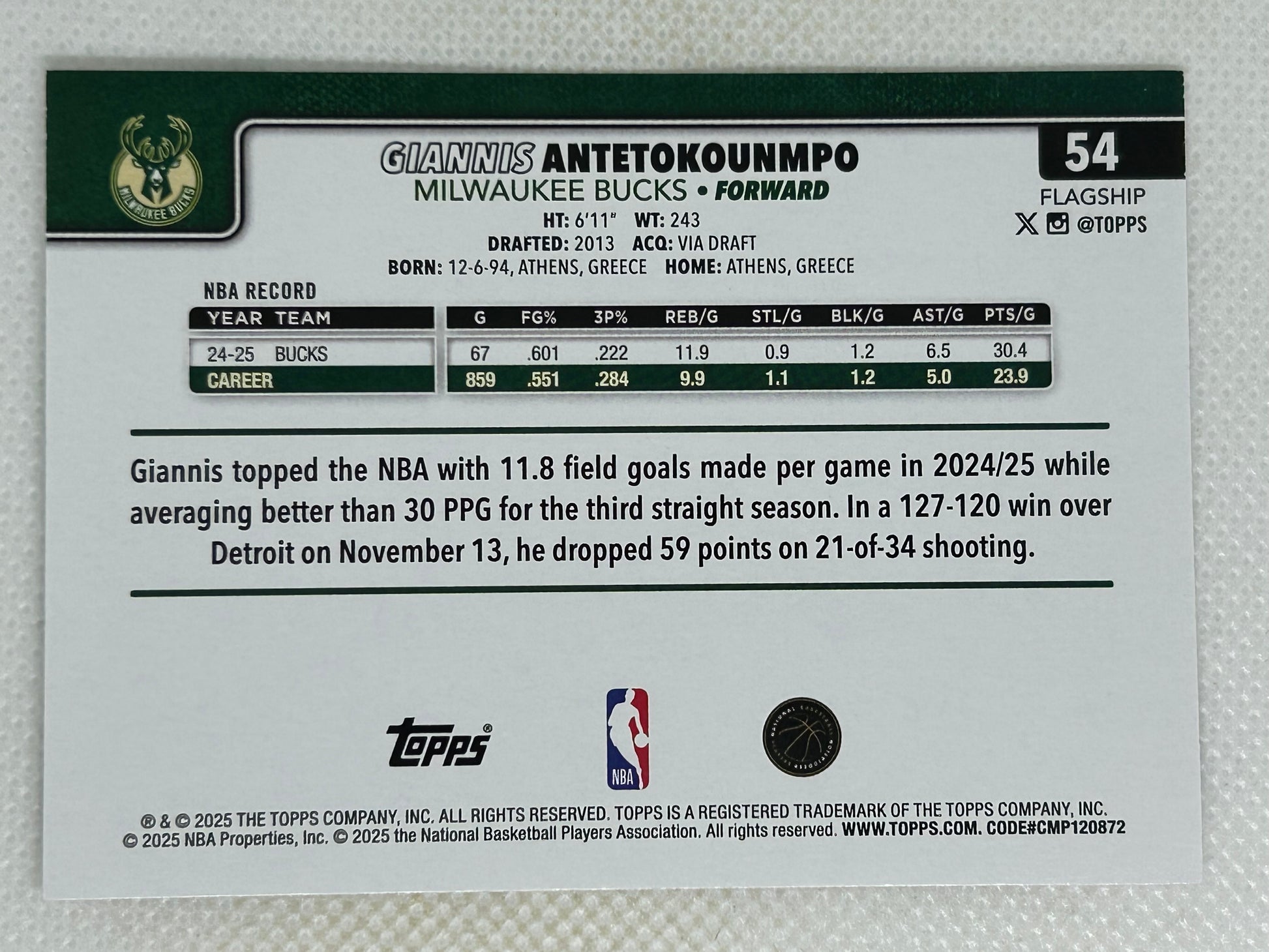 2025-26 Topps #54 Giannis Antetokounmpo Milwaukee Bucks