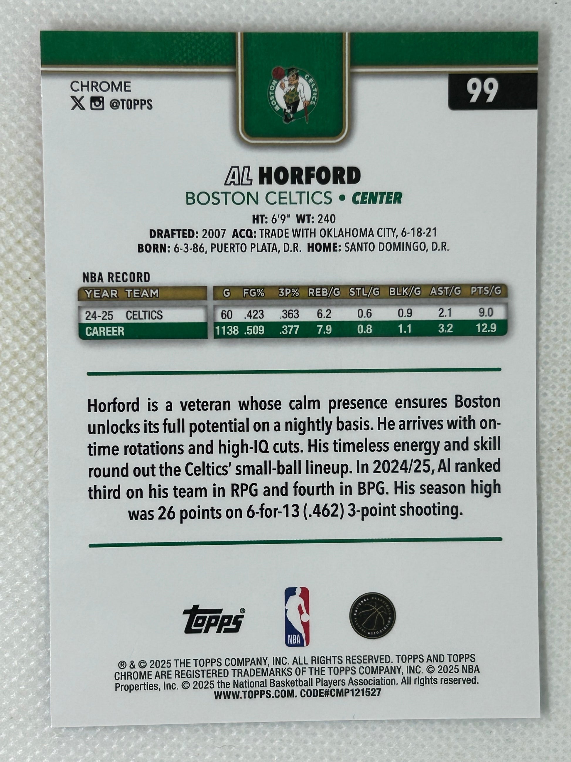 2025-26 Topps Chrome Al Horford Red White Blue Refractor #99 Boston Celtics
