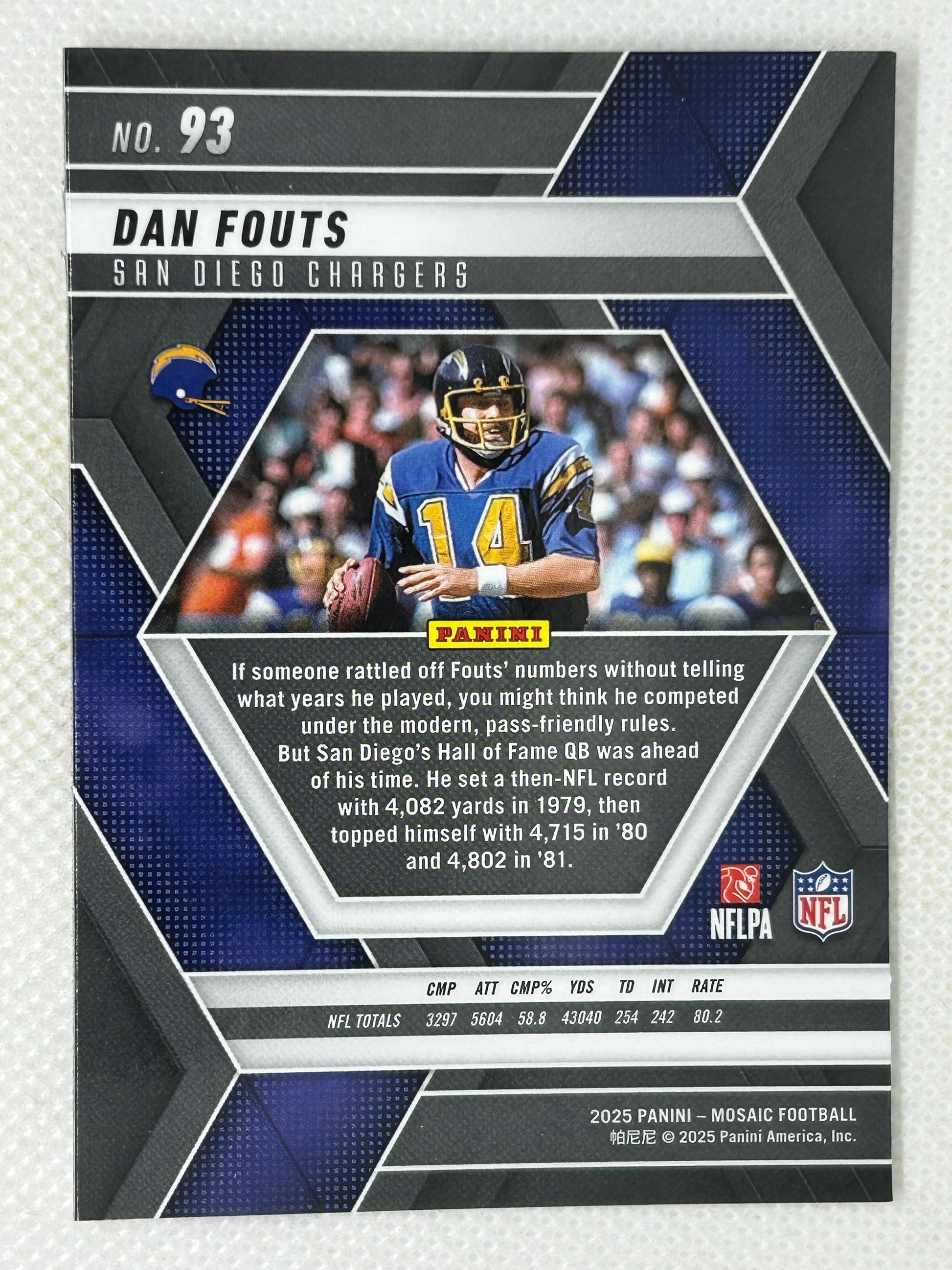 2025 Panini Mosaic Dan Fouts #93 San Diego Chargers Signed Card