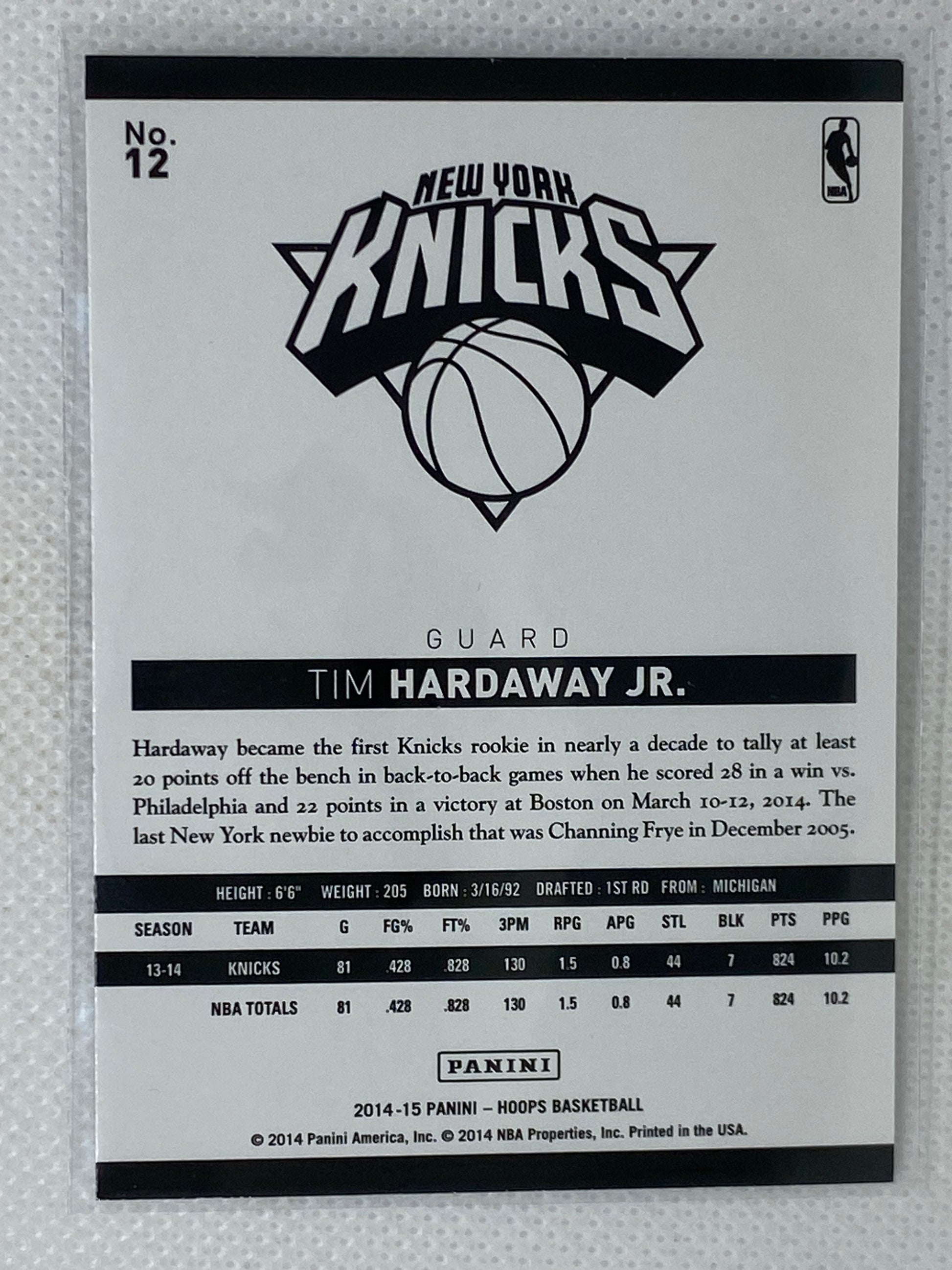 2014-15 Panini NBA Hoops Basketball Card Tim Hardaway Jr. #12 New York Knicks